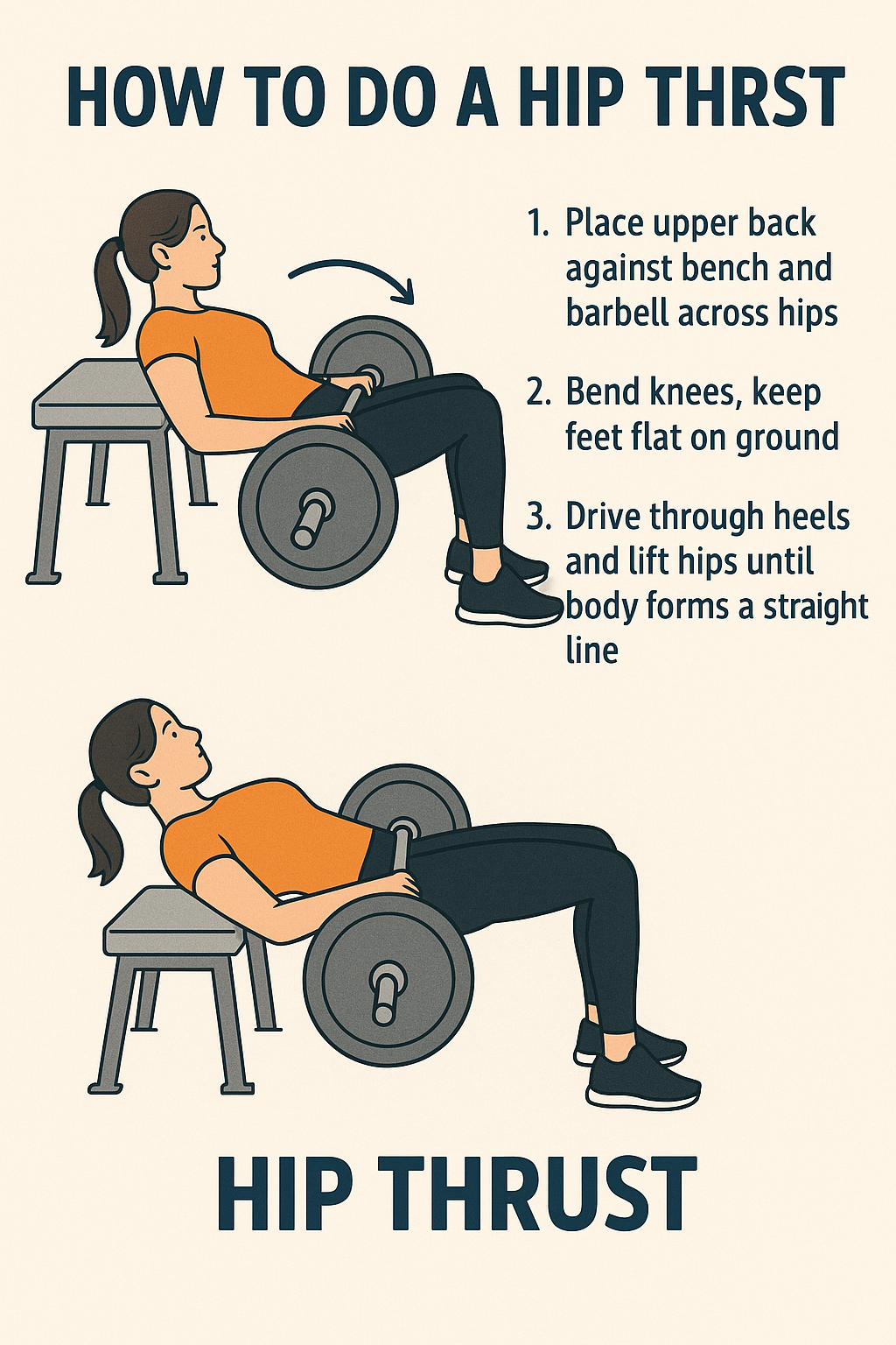 The hip thrust exercise offers a wide range of benefits, making it one of the most effective movements for developing strength and stability in the lower body. It primarily targets the glutes, activating them more effectively than many other exercises like squats or lunges. Strong glutes not only improve posture but also play a crucial role in protecting the lower back, hips, and knees from injury. This exercise also enhances athletic performance by building explosive power that translates into faster sprinting, higher jumping, and improved agility. Beyond performance, hip thrusts strengthen supporting muscles such as the hamstrings, quads, and hip stabilizers, which further improves balance and reduces the risk of injury. Another advantage is their versatility, as they can be performed with just bodyweight, resistance bands, or a loaded barbell, making them suitable for all fitness levels. Many people also incorporate hip thrusts for their aesthetic benefits, as they are highly effective in shaping and strengthening the glutes for a more toned and balanced physique. Overall, the hip thrust is a powerful exercise for anyone looking to build strength, prevent injuries, and improve both function and appearance.