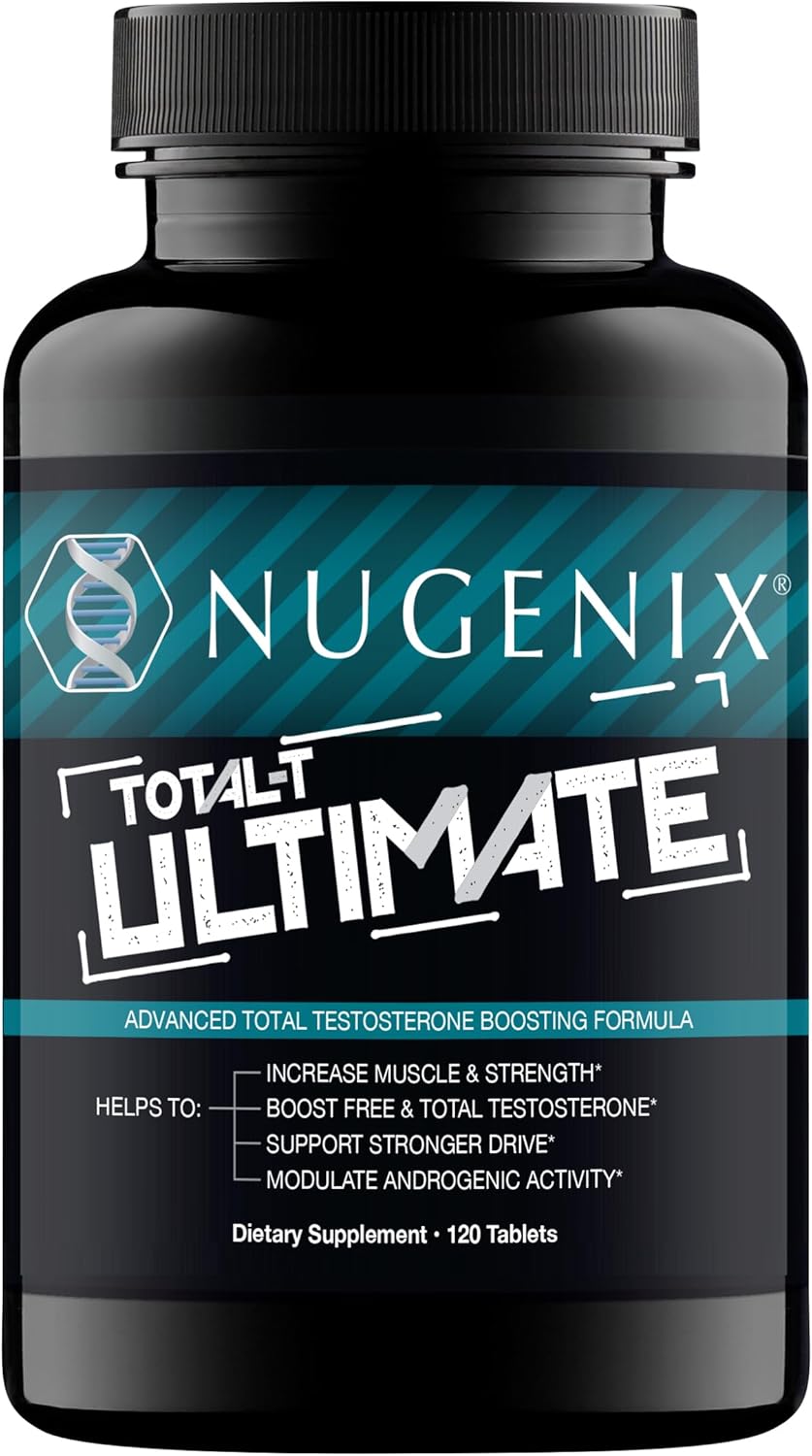 Nugenix Total-T Ultimate is a premium testosterone support supplement formulated to help men maintain healthy testosterone levels, improve energy, and support overall vitality. It contains a blend of vitamins, minerals, and herbal extracts aimed at promoting natural testosterone production, muscle strength, and performance. Key ingredients often found in its formula include fenugreek extract, ashwagandha, longjack (tongkat ali), boron, and zinc—nutrients and botanicals linked to male hormonal health. This combination is designed to not only support testosterone levels but also improve physical stamina, mental focus, and workout performance.